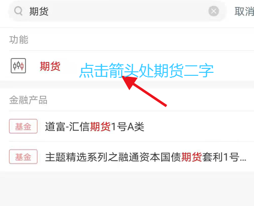 2、搜索期貨后,找到功能-期貨;